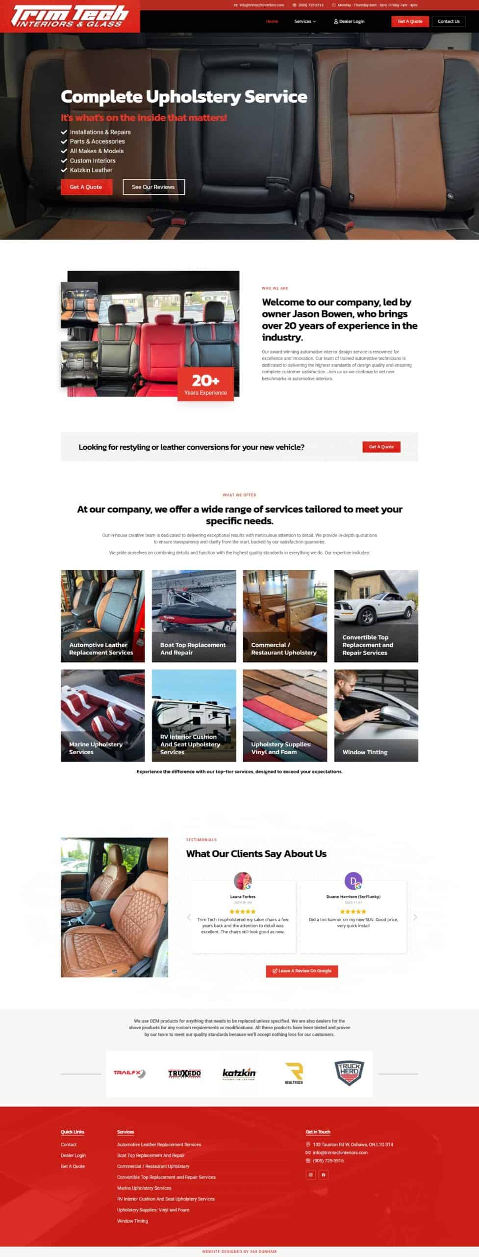 Jason and his team offer a Complete Upholstery Service in Oshawa. This redesign focused on SEO, and expanding the current service offerings.