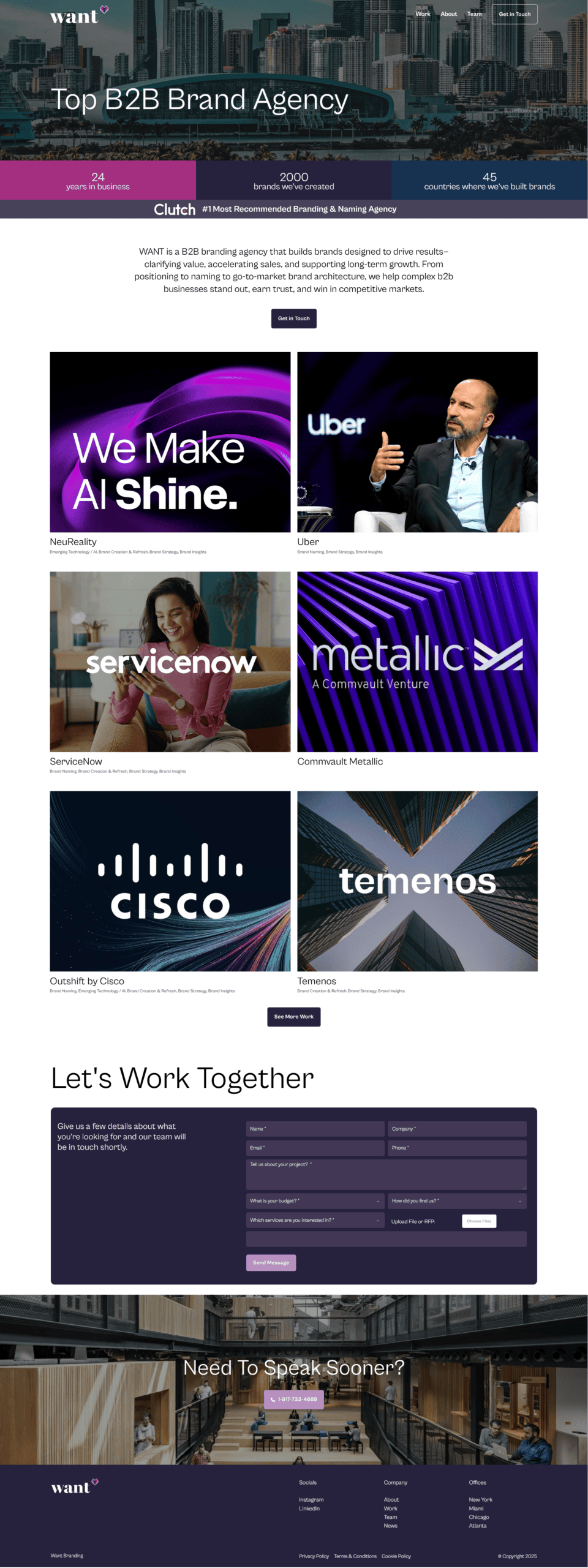 Project Overview WANT Branding, a top-tier naming and strategy agency, needed a dedicated landing page to capture high-value B2B leads. The goal was not to redesign their entire website, but to build a focused “conversion engine” that utilized their existing brand assets. We designed a streamlined, single-page experience that strictly adheres to their corporate visual identity while removing distractions to focus entirely on generating inquiries.